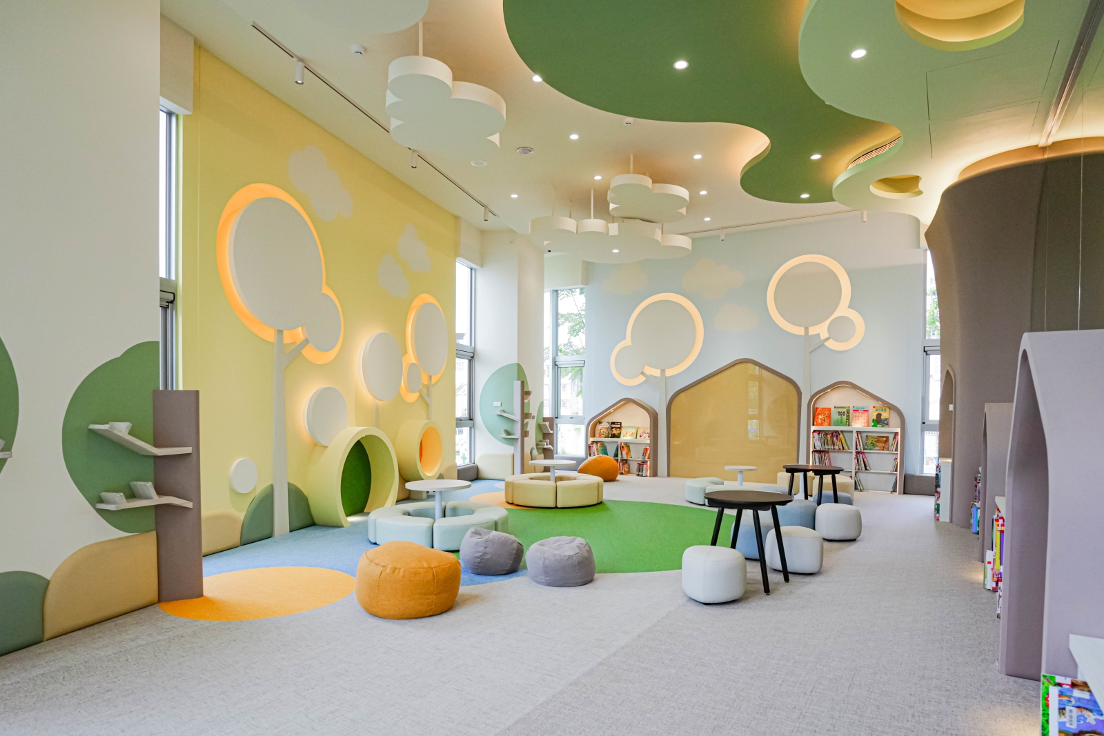 | 簡介 | 東勢許良宇圖書館源於許景堂伉儷紀念愛子許良宇先生之善舉,於112年11月動工,114年12月完工?用開館,為地上3層樓之獨棟建築物。 由建築師戴育澤團隊操刀,設計靈感源自東勢的「山城」地貌,建築外觀的線條與周邊山景自然融合,將戶外的綠意景觀一路延續至室內。 館內以純淨的白色為主色調,搭配溫暖色塊點綴,並透過大面積玻璃窗引入自然光線,營造出開闊、明亮的閱讀氛圍,創造出一個融合書香與自然的舒適場域。 一樓兒童閱覽區以「森林」為意象,運用高低錯落的大小樹木造型與色彩繽紛的「樹洞」設計,創造生動的閱讀體驗,期望透過推廣閱讀與知識的力量,照亮臺中東勢山城,成為文化與教育的新地標。 |
